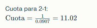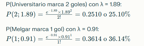 Paso 3: Calcular probabilidad del marcador exacto multiplicando probabilidades individuales