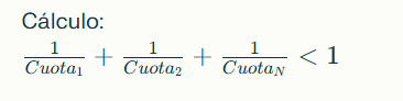 Cuando la suma de probabilidades implícitas de todos los resultados posibles es menor a 100%, existe arbitraje.